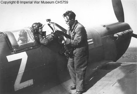 Squadron Leader Wilfred Duncan-Smith of 603 Squadron bids farewell to his dog before departing on a sortie from Hornchurch